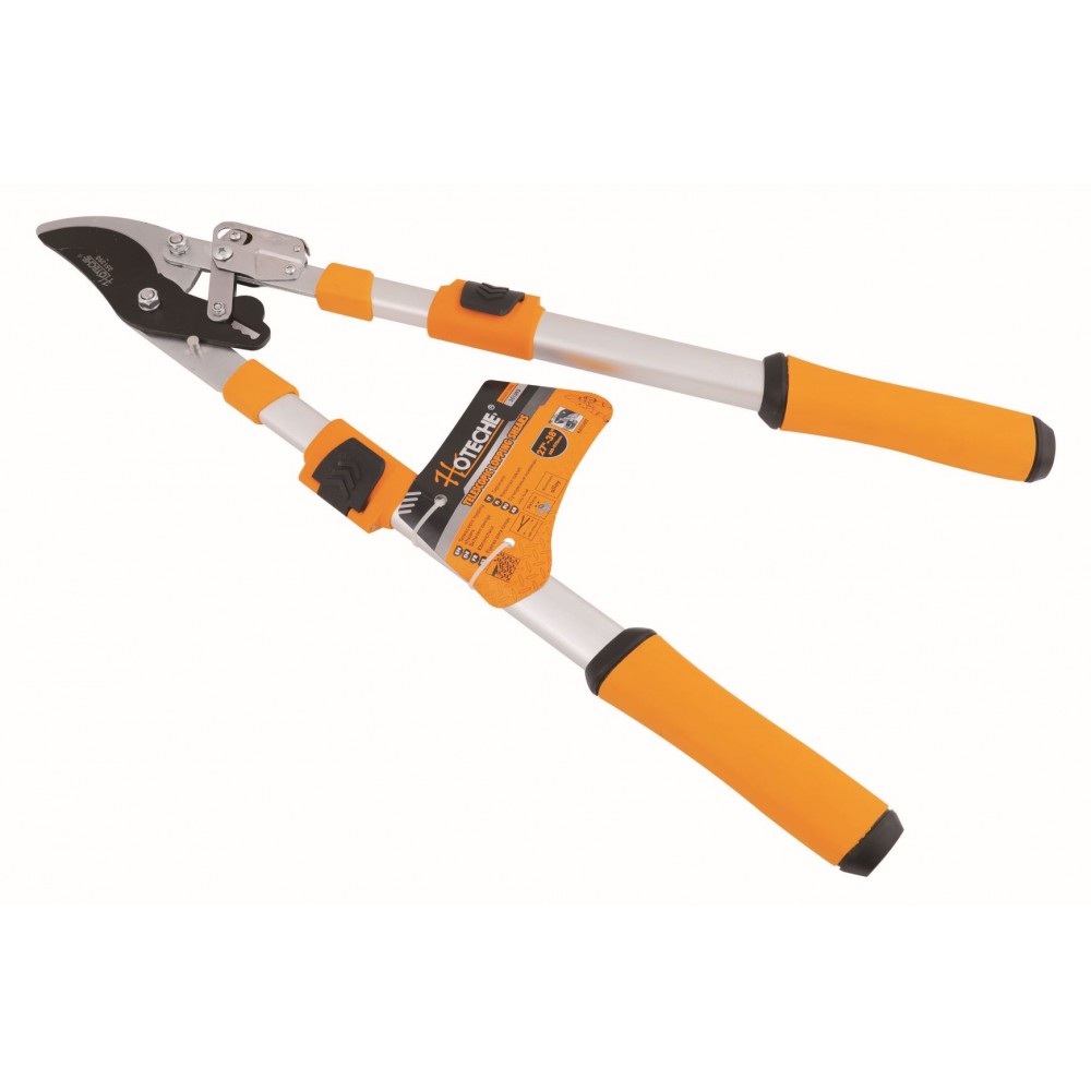 Tijeras de podar telescópicas Hoja superior: Hoja de revestimiento antiadherente de acero al carbono medio hoja plateada brillo Tubos telescópicos de aluminio con agarres cómodos pp + tpr Mango Longitud total: 27 “-38” / 680-970mm